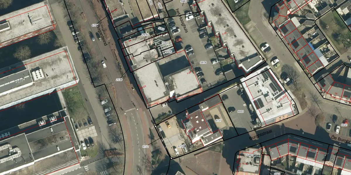 Het perceel waarop het adres ligt is GDP00-D-5978. De afkorting 'GDP00' staat voor kadastrale gemeente Geldrop. De oppervlakte van het perceel is 2574 m². Dat is groter dan gemiddeld in Geldrop, waar de gemiddelde perceeloppervlakte op 1101,15 m² ligt. De grootste perceeloppervlakte in de kadastrale gemeente is 51,6 ha. De kleinste oppervlakte bedraagt 0 m². Op het perceel zijn 35 adressen aanwezig. De huidige grenzen van het perceel zijn digitaal in de Basisregistratie Kadaster (BRK) geregistreerd op 25-05-2009.