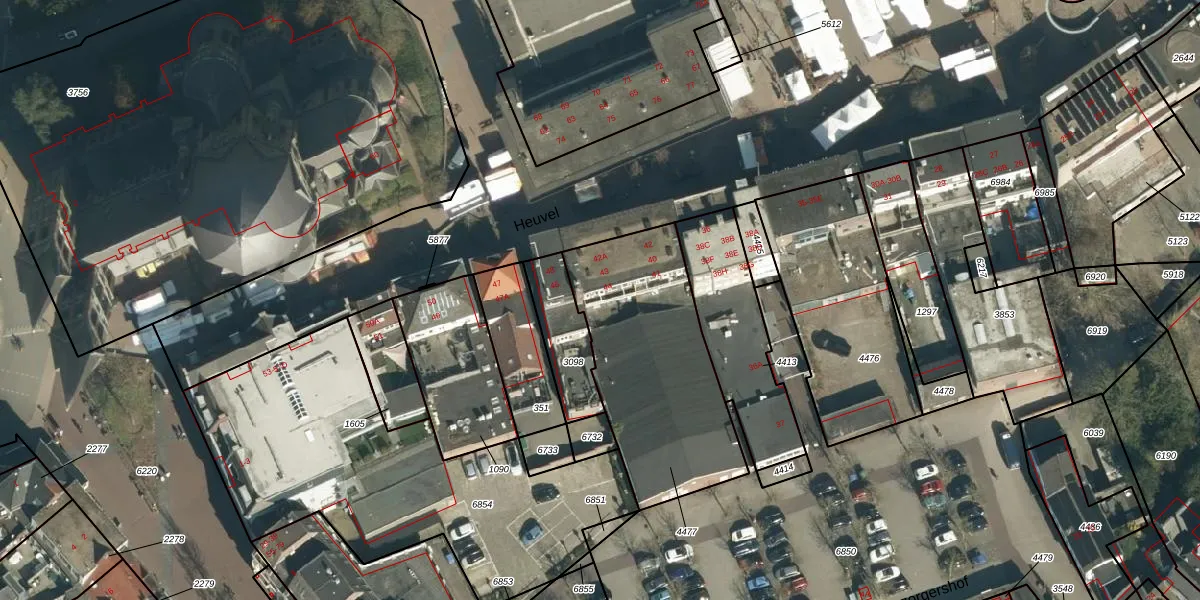 Heuvel 43 is gelegen op kadastraal perceel GDP00D4477. Deze kadastrale aanduiding is uniek en wordt gebruikt door het Kadaster om eigendomsrechten en andere zakelijke rechten vast te leggen. Het perceel maakt onderdeel uit van de kadastrale gemeente Geldrop.