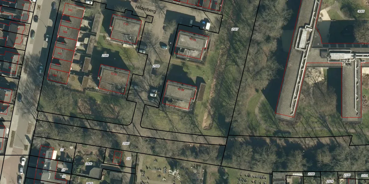 Het perceel waarop Hilderberg 31 staat heeft een oppervlakte van 4897 m². Dit is een zeer groot perceel. De perceeloppervlakte wordt geregistreerd door het Kadaster. Gedetailleerde informatie over de maten van dit perceel kunt u vinden in het rapport Kadastrale kaart met maatvoering van Hilderberg 31.