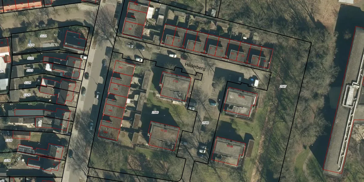 Het perceel waarop Hilderberg 8 staat heeft een oppervlakte van 3055 m². Dit is een zeer groot perceel. De perceeloppervlakte wordt geregistreerd door het Kadaster. Gedetailleerde informatie over de maten van dit perceel kunt u vinden in het rapport Kadastrale kaart met maatvoering van Hilderberg 8.