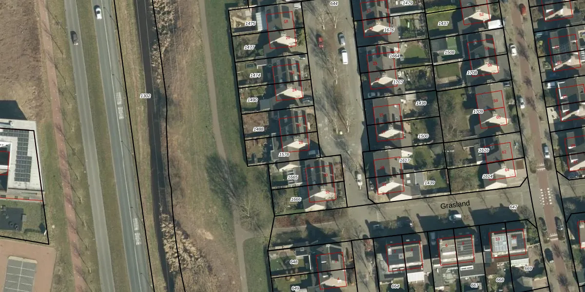 Gebruik de zoekbalk of klik op een perceel voor informatie over de adressen binnen dit perceel.