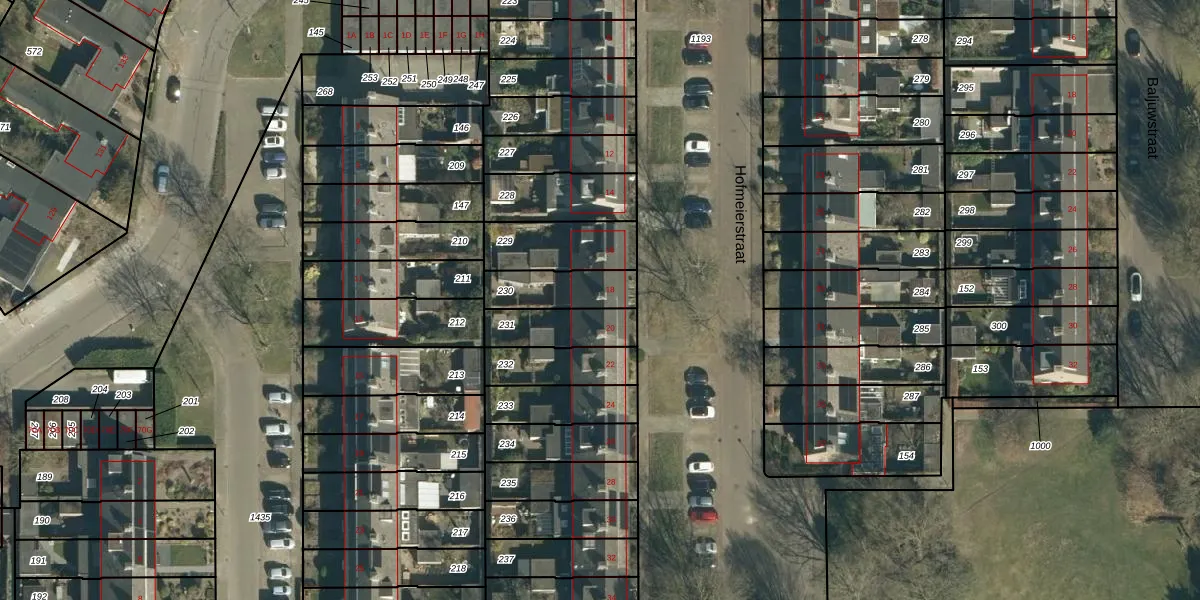 Het perceel waarop Hofmeierstraat 18 staat heeft een oppervlakte van 163 m². Dit is een middelgroot perceel. De perceeloppervlakte wordt geregistreerd door het Kadaster. Gedetailleerde informatie over de maten van dit perceel kunt u vinden in het rapport Kadastrale kaart met maatvoering van Hofmeierstraat 18.