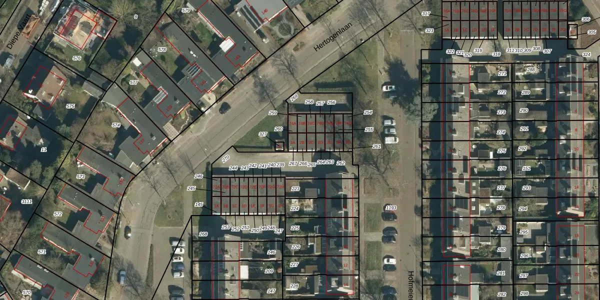 Hofmeierstraat 2-B is gelegen op kadastraal perceel GDP00E266. Deze kadastrale aanduiding is uniek en wordt gebruikt door het Kadaster om eigendomsrechten en andere zakelijke rechten vast te leggen. Het perceel maakt onderdeel uit van de kadastrale gemeente Geldrop.