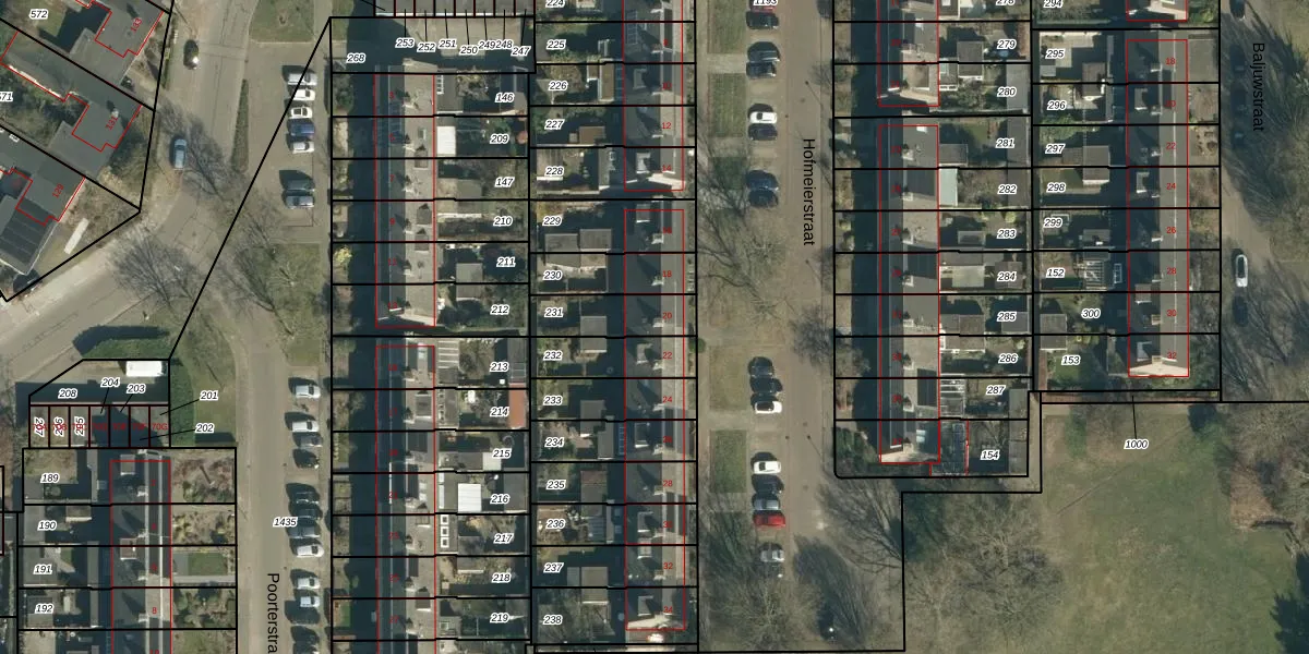 Hofmeierstraat 20 is gelegen op kadastraal perceel GDP00E231. Deze kadastrale aanduiding is uniek en wordt gebruikt door het Kadaster om eigendomsrechten en andere zakelijke rechten vast te leggen. Het perceel maakt onderdeel uit van de kadastrale gemeente Geldrop.
