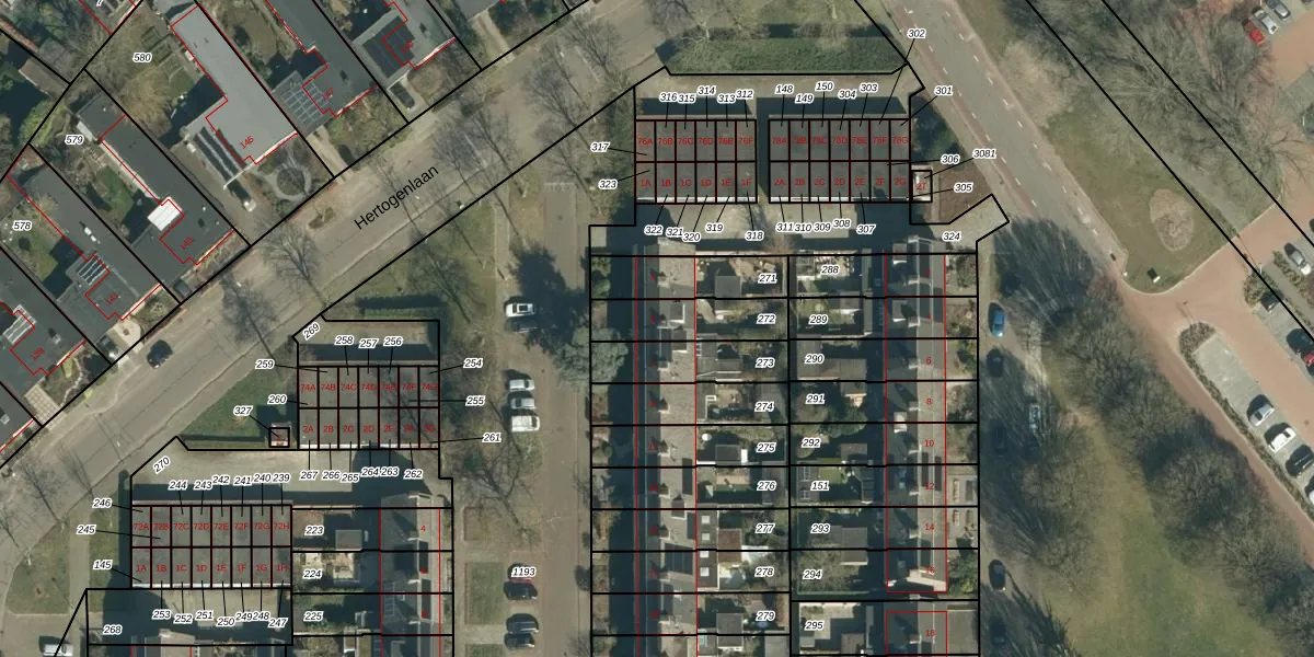 Gebruik de zoekbalk of klik op een perceel voor informatie over de adressen binnen dit perceel.