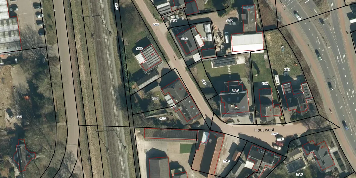 Het perceel waarop Hout west 2 staat heeft een oppervlakte van 500 m². Dit is een groot perceel. De perceeloppervlakte wordt geregistreerd door het Kadaster. Gedetailleerde informatie over de maten van dit perceel kunt u vinden in het rapport Kadastrale kaart met maatvoering van Hout west 2.