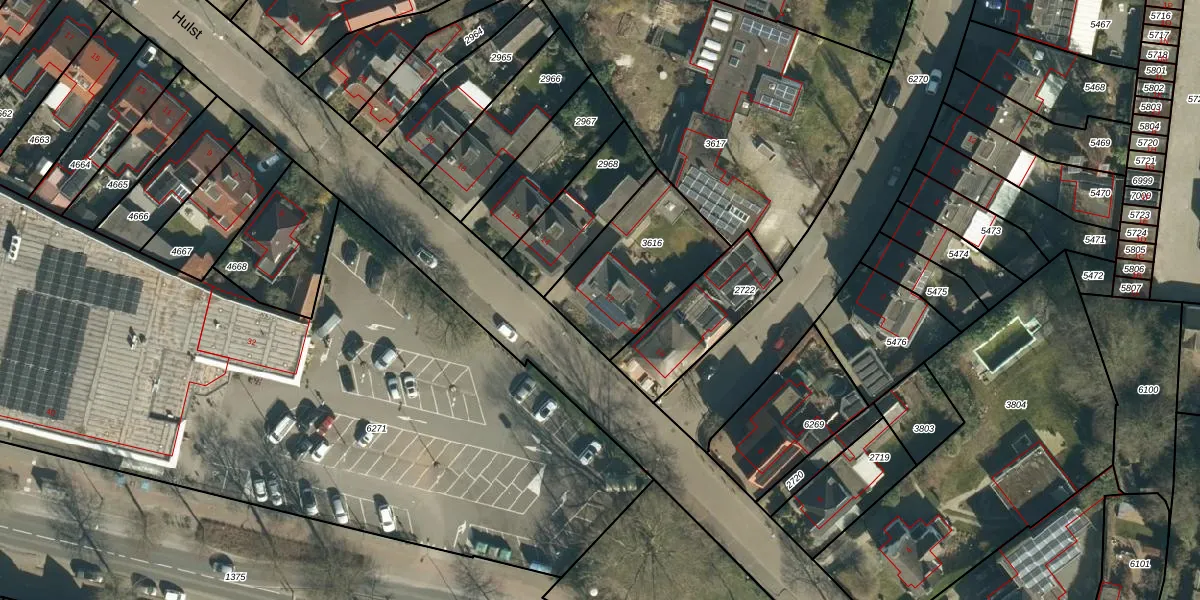 Het perceel waarop Hulst 12 staat heeft een oppervlakte van 457 m². Dit is een groot perceel. De perceeloppervlakte wordt geregistreerd door het Kadaster. Gedetailleerde informatie over de maten van dit perceel kunt u vinden in het rapport Kadastrale kaart met maatvoering van Hulst 12.