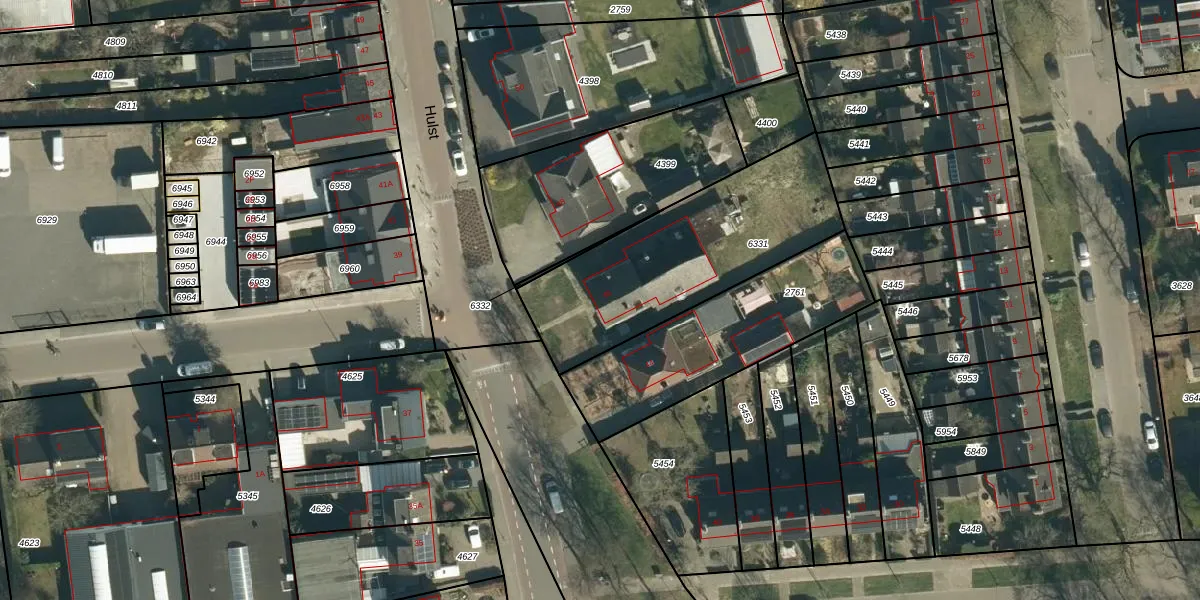 Het perceel waarop Hulst 46 staat heeft een oppervlakte van 910 m². Dit is een groot perceel. De perceeloppervlakte wordt geregistreerd door het Kadaster. Gedetailleerde informatie over de maten van dit perceel kunt u vinden in het rapport Kadastrale kaart met maatvoering van Hulst 46.