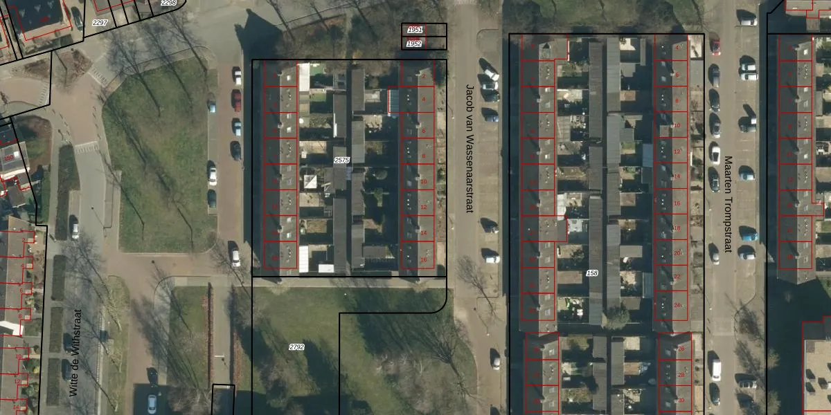 Jacob van Wassenaarstraat 12 is gelegen op kadastraal perceel GDP00F2575. Deze kadastrale aanduiding is uniek en wordt gebruikt door het Kadaster om eigendomsrechten en andere zakelijke rechten vast te leggen. Het perceel maakt onderdeel uit van de kadastrale gemeente Geldrop.