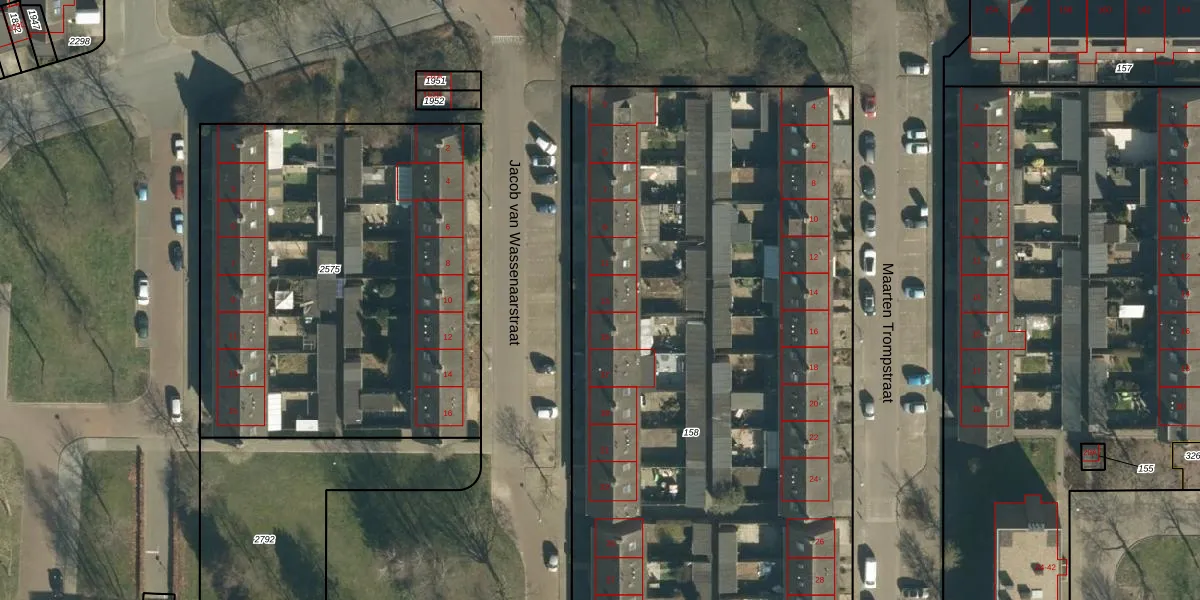 Jacob van Wassenaarstraat 13 is gelegen op kadastraal perceel GDP00F158. Deze kadastrale aanduiding is uniek en wordt gebruikt door het Kadaster om eigendomsrechten en andere zakelijke rechten vast te leggen. Het perceel maakt onderdeel uit van de kadastrale gemeente Geldrop.
