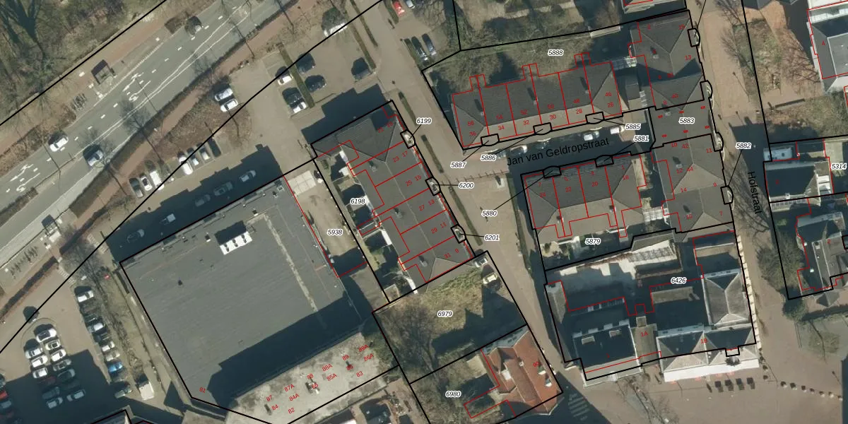 Jan van Geldropstraat 13 is gelegen op kadastraal perceel GDP00D6198. Deze kadastrale aanduiding is uniek en wordt gebruikt door het Kadaster om eigendomsrechten en andere zakelijke rechten vast te leggen. Het perceel maakt onderdeel uit van de kadastrale gemeente Geldrop.