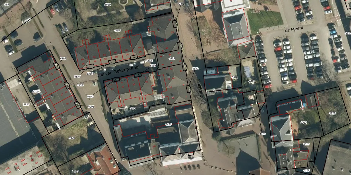 Jan van Geldropstraat 14 is gelegen op kadastraal perceel GDP00D5879. Deze kadastrale aanduiding is uniek en wordt gebruikt door het Kadaster om eigendomsrechten en andere zakelijke rechten vast te leggen. Het perceel maakt onderdeel uit van de kadastrale gemeente Geldrop.