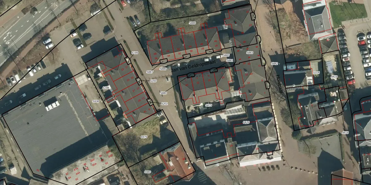 Jan van Geldropstraat 24 is gelegen op kadastraal perceel GDP00D5879. Deze kadastrale aanduiding is uniek en wordt gebruikt door het Kadaster om eigendomsrechten en andere zakelijke rechten vast te leggen. Het perceel maakt onderdeel uit van de kadastrale gemeente Geldrop.
