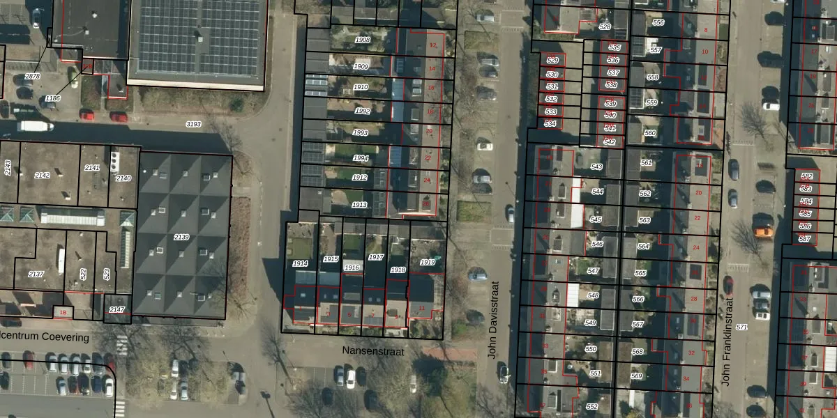 Gebruik de zoekbalk of klik op een perceel voor informatie over de adressen binnen dit perceel.