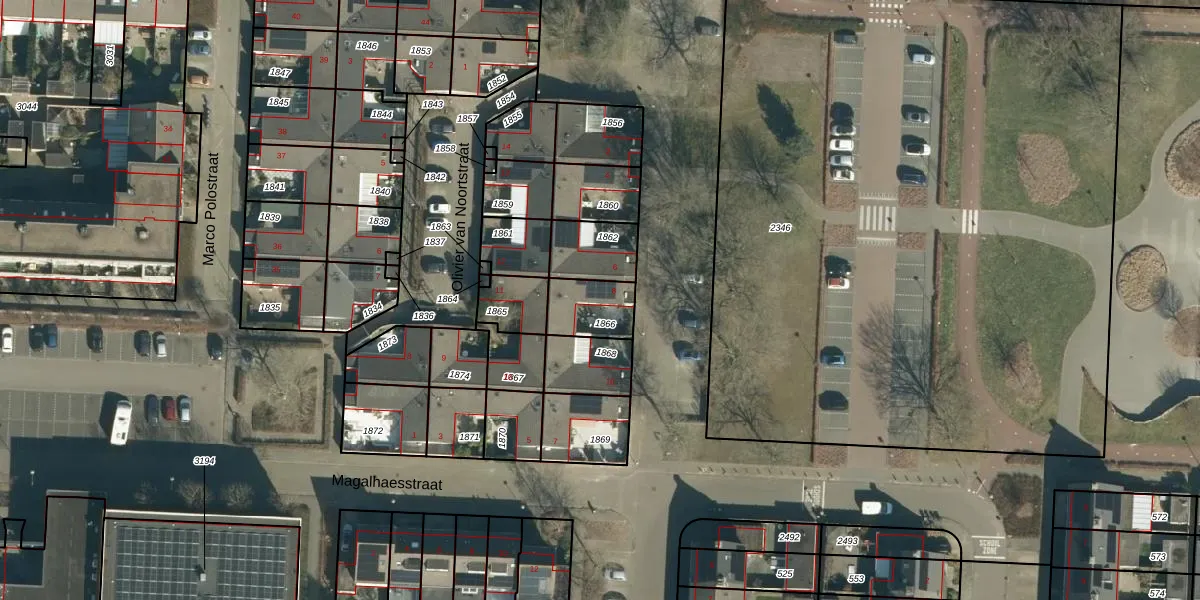 Gebruik de zoekbalk of klik op een perceel voor informatie over de adressen binnen dit perceel.