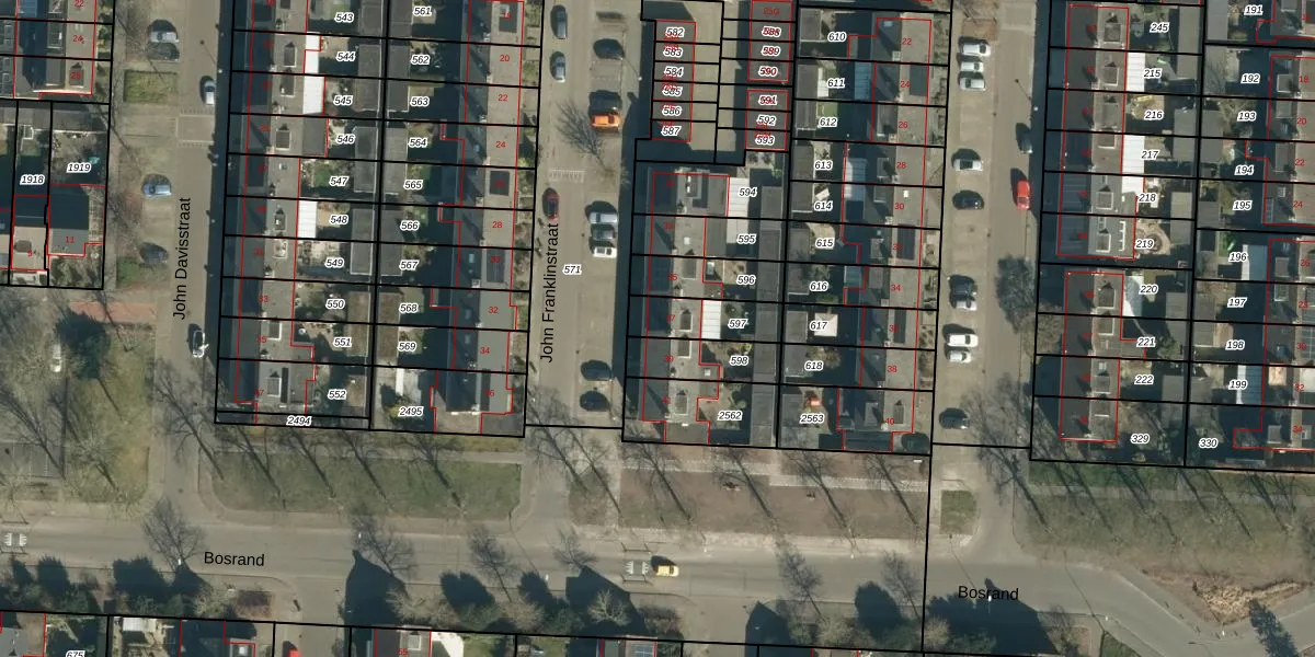 John Franklinstraat 37 is gelegen op kadastraal perceel GDP00F597. Deze kadastrale aanduiding is uniek en wordt gebruikt door het Kadaster om eigendomsrechten en andere zakelijke rechten vast te leggen. Het perceel maakt onderdeel uit van de kadastrale gemeente Geldrop.