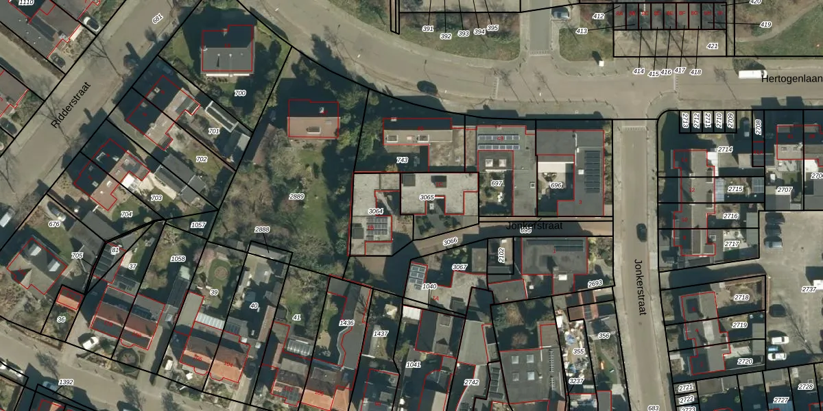 Het perceel waarop Jonkerstraat 1-C staat heeft een oppervlakte van 265 m². Dit is een middelgroot perceel. De perceeloppervlakte wordt geregistreerd door het Kadaster. Gedetailleerde informatie over de maten van dit perceel kunt u vinden in het rapport Kadastrale kaart met maatvoering van Jonkerstraat 1-C.