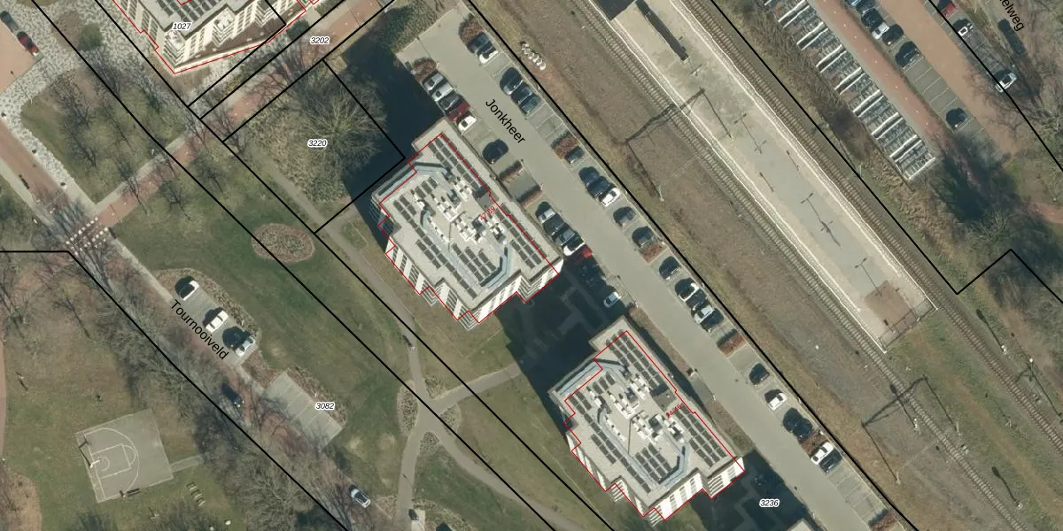 Jonkheer 55 is gelegen op kadastraal perceel GDP00E3236. Deze kadastrale aanduiding is uniek en wordt gebruikt door het Kadaster om eigendomsrechten en andere zakelijke rechten vast te leggen. Het perceel maakt onderdeel uit van de kadastrale gemeente Geldrop.