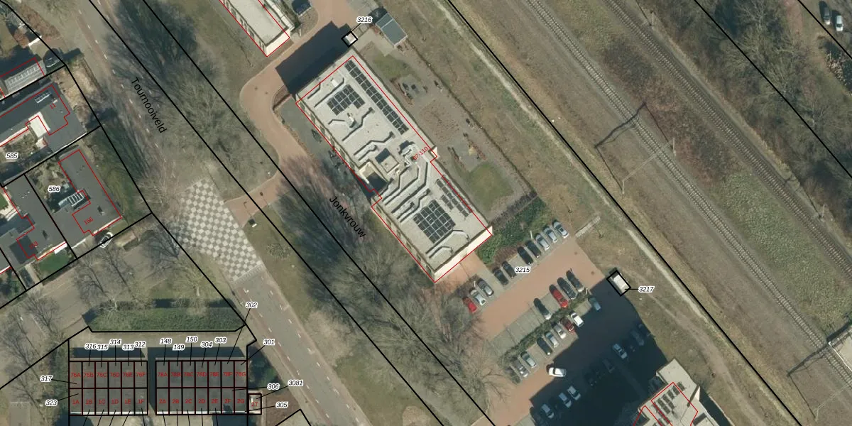 Het perceel waarop Jonkvrouw 101 staat heeft een oppervlakte van 1,3 ha. Dit is een zeer groot perceel. De perceeloppervlakte wordt geregistreerd door het Kadaster. Gedetailleerde informatie over de maten van dit perceel kunt u vinden in het rapport Kadastrale kaart met maatvoering van Jonkvrouw 101.