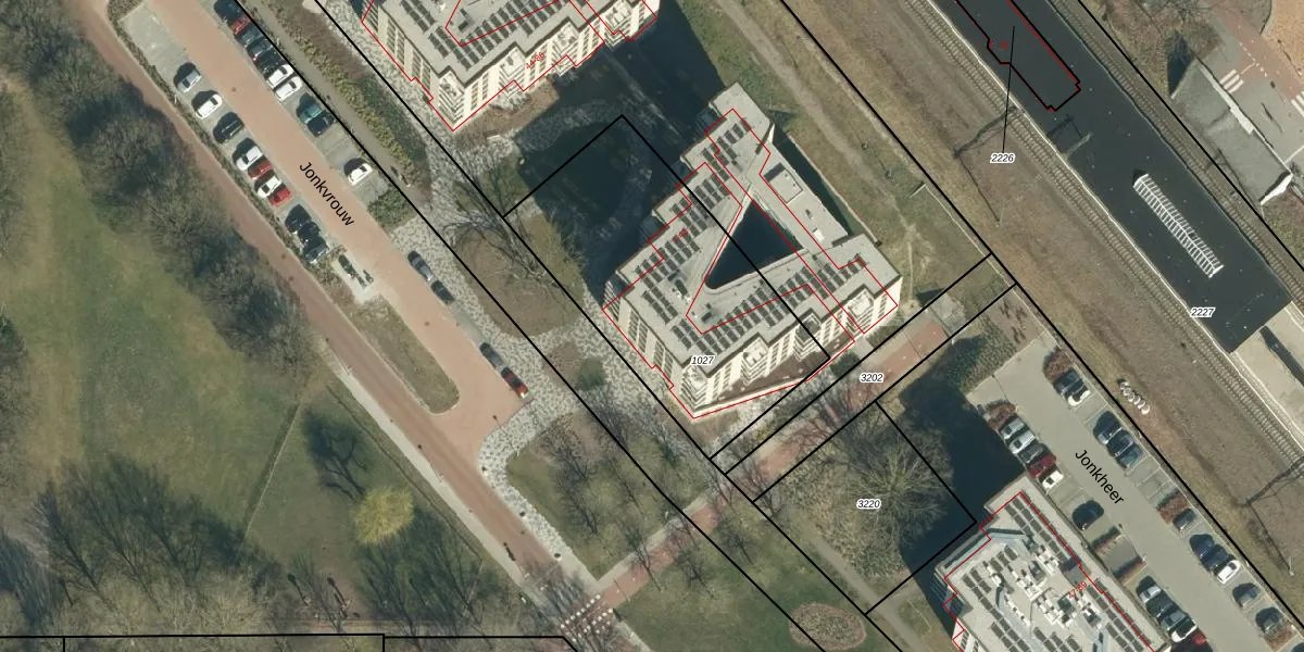 Jonkvrouw 24 is gelegen op kadastraal perceel GDP00E1027. Deze kadastrale aanduiding is uniek en wordt gebruikt door het Kadaster om eigendomsrechten en andere zakelijke rechten vast te leggen. Het perceel maakt onderdeel uit van de kadastrale gemeente Geldrop.