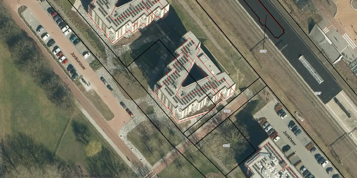 Het perceel waarop Jonkvrouw 41 staat heeft een oppervlakte van 1197 m². Dit is een zeer groot perceel. De perceeloppervlakte wordt geregistreerd door het Kadaster. Gedetailleerde informatie over de maten van dit perceel kunt u vinden in het rapport Kadastrale kaart met maatvoering van Jonkvrouw 41.