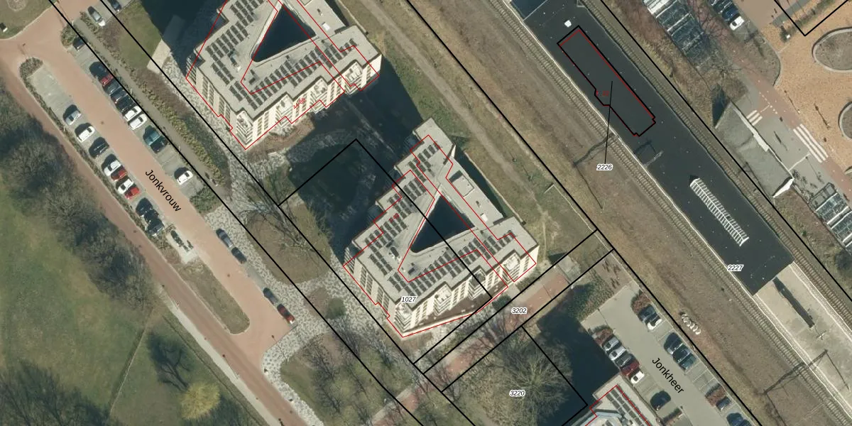Jonkvrouw 42 is gelegen op kadastraal perceel GDP00E3215. Deze kadastrale aanduiding is uniek en wordt gebruikt door het Kadaster om eigendomsrechten en andere zakelijke rechten vast te leggen. Het perceel maakt onderdeel uit van de kadastrale gemeente Geldrop.