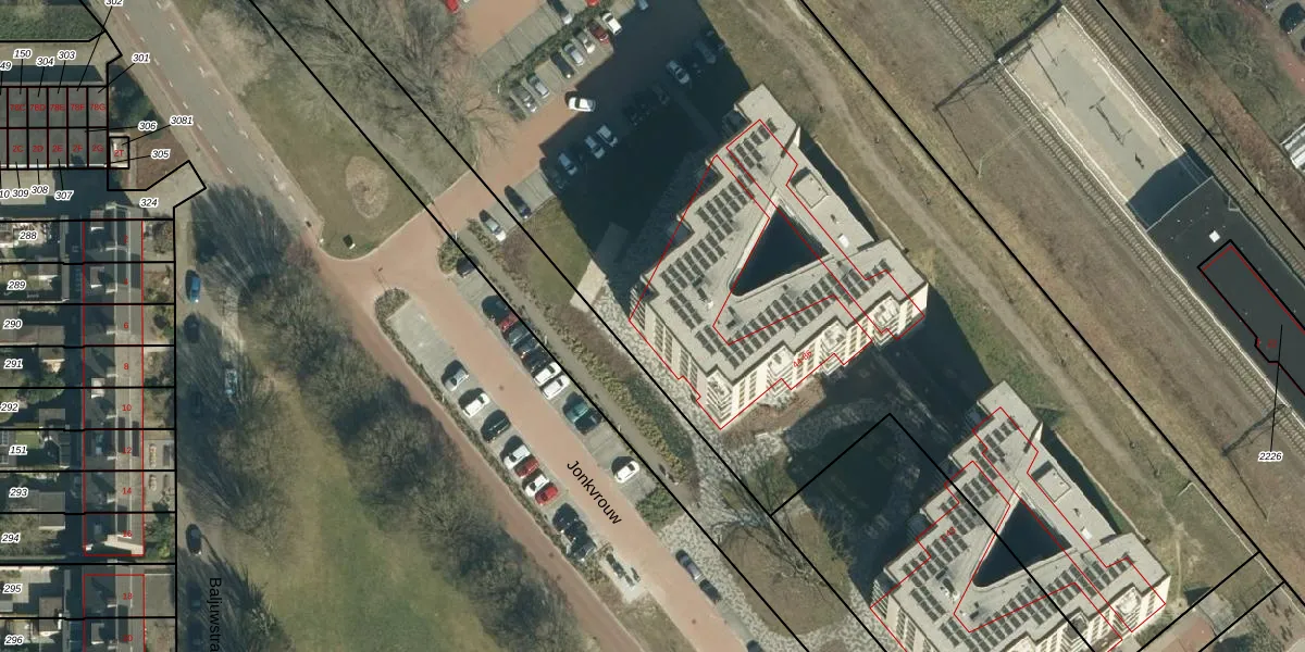 Het perceel waarop Jonkvrouw 44-C staat heeft een oppervlakte van 1,3 ha. Dit is een zeer groot perceel. De perceeloppervlakte wordt geregistreerd door het Kadaster. Gedetailleerde informatie over de maten van dit perceel kunt u vinden in het rapport Kadastrale kaart met maatvoering van Jonkvrouw 44-C.