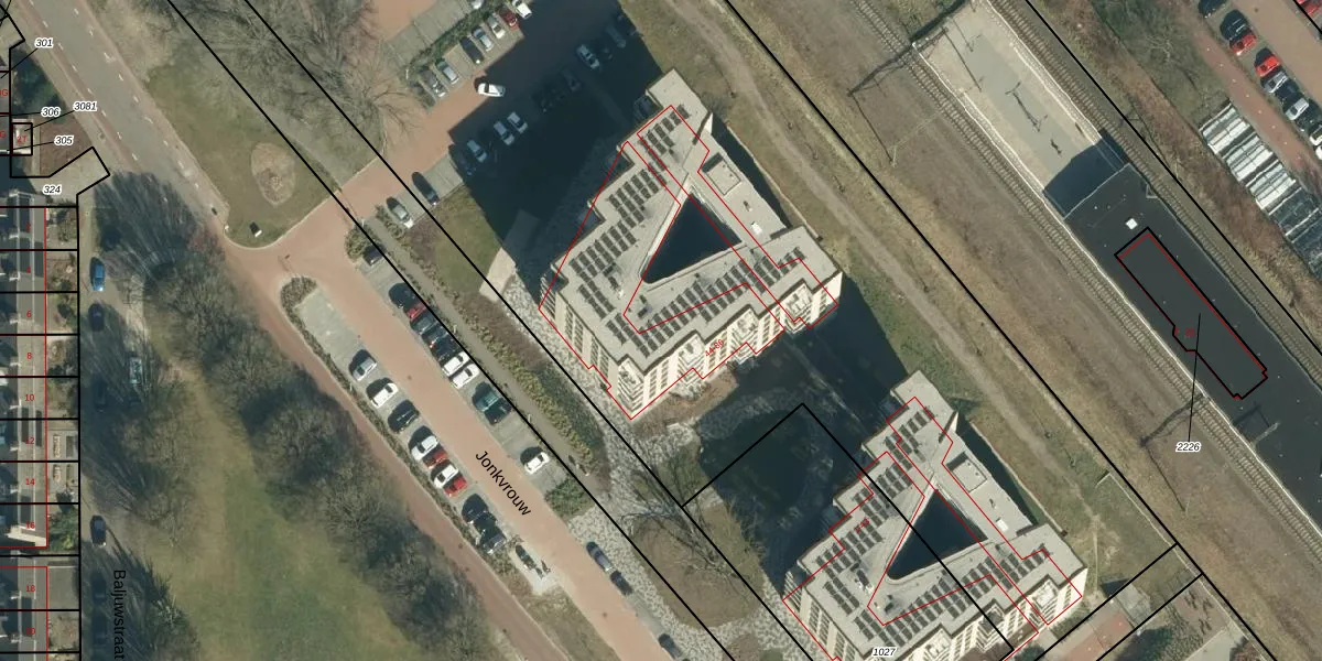 Het perceel waarop Jonkvrouw 65 staat heeft een oppervlakte van 1,3 ha. Dit is een zeer groot perceel. De perceeloppervlakte wordt geregistreerd door het Kadaster. Gedetailleerde informatie over de maten van dit perceel kunt u vinden in het rapport Kadastrale kaart met maatvoering van Jonkvrouw 65.