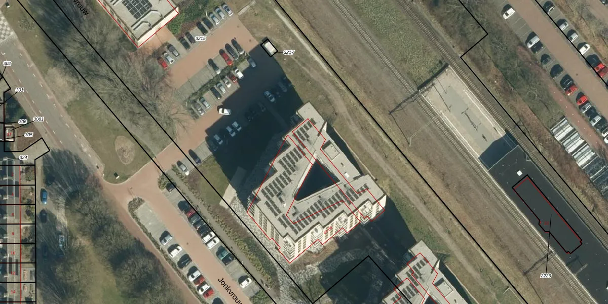 Jonkvrouw 70 is gelegen op kadastraal perceel GDP00E3215. Deze kadastrale aanduiding is uniek en wordt gebruikt door het Kadaster om eigendomsrechten en andere zakelijke rechten vast te leggen. Het perceel maakt onderdeel uit van de kadastrale gemeente Geldrop.
