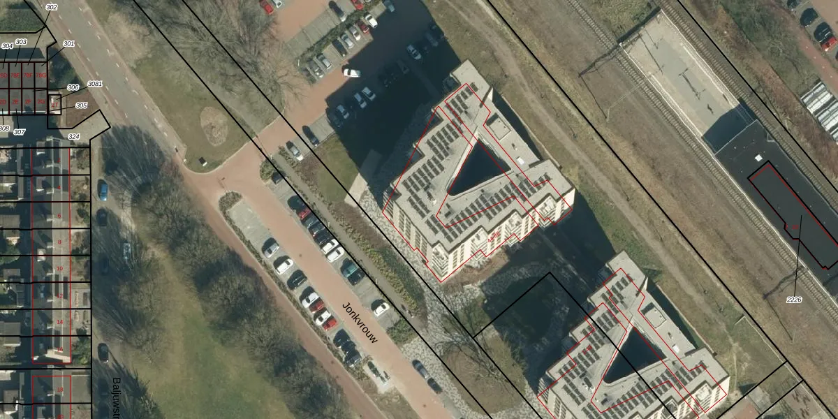 Het perceel waarop Jonkvrouw 75 staat heeft een oppervlakte van 1,3 ha. Dit is een zeer groot perceel. De perceeloppervlakte wordt geregistreerd door het Kadaster. Gedetailleerde informatie over de maten van dit perceel kunt u vinden in het rapport Kadastrale kaart met maatvoering van Jonkvrouw 75.