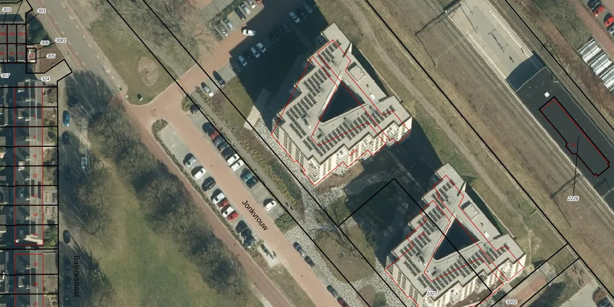 Het perceel waarop Jonkvrouw 82 staat heeft een oppervlakte van 1,3 ha. Dit is een zeer groot perceel. De perceeloppervlakte wordt geregistreerd door het Kadaster. Gedetailleerde informatie over de maten van dit perceel kunt u vinden in het rapport Kadastrale kaart met maatvoering van Jonkvrouw 82.