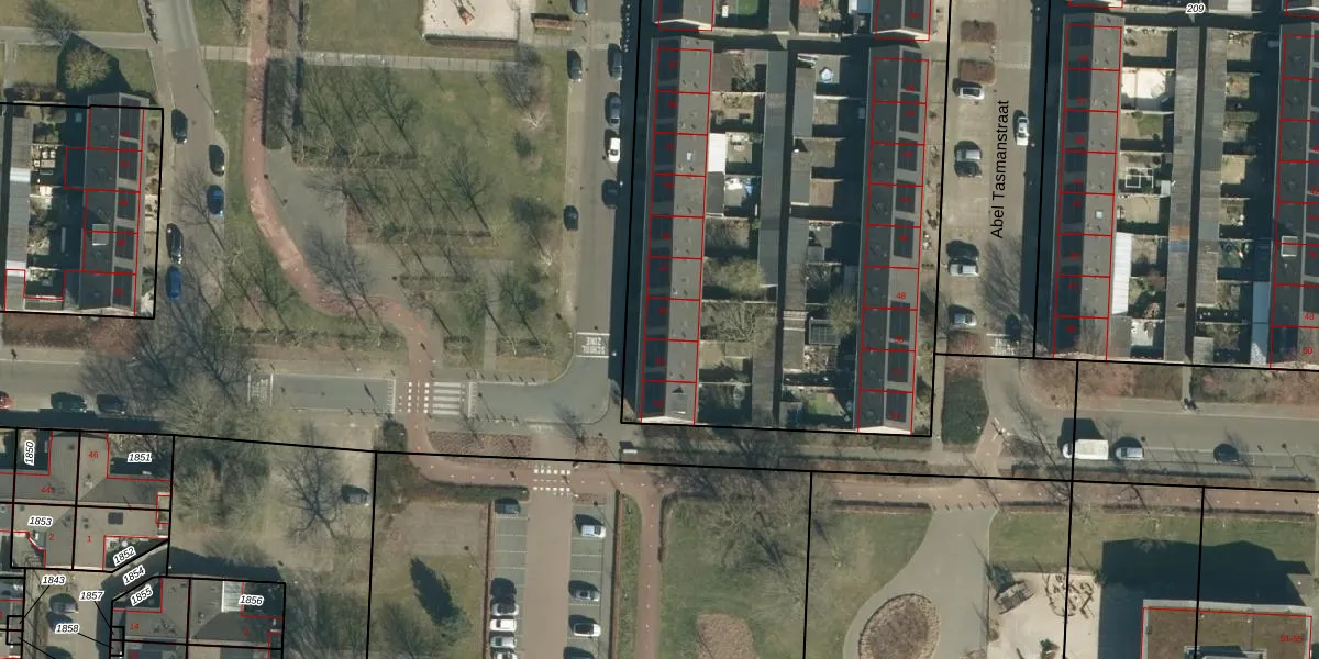 Het perceel waarop Joris van Spilbergenstraat 49 staat heeft een oppervlakte van 5502 m². Dit is een zeer groot perceel. De perceeloppervlakte wordt geregistreerd door het Kadaster. Gedetailleerde informatie over de maten van dit perceel kunt u vinden in het rapport Kadastrale kaart met maatvoering van Joris van Spilbergenstraat 49.