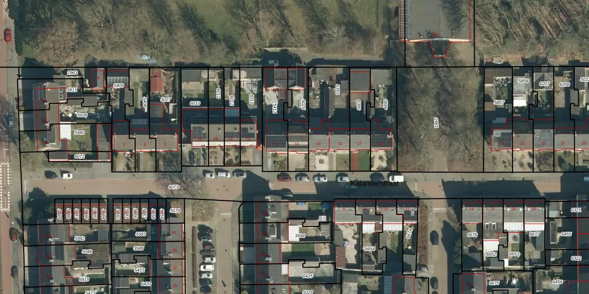 Kalanderstraat 11 is gelegen op kadastraal perceel GDP00C5025. Deze kadastrale aanduiding is uniek en wordt gebruikt door het Kadaster om eigendomsrechten en andere zakelijke rechten vast te leggen. Het perceel maakt onderdeel uit van de kadastrale gemeente Geldrop.