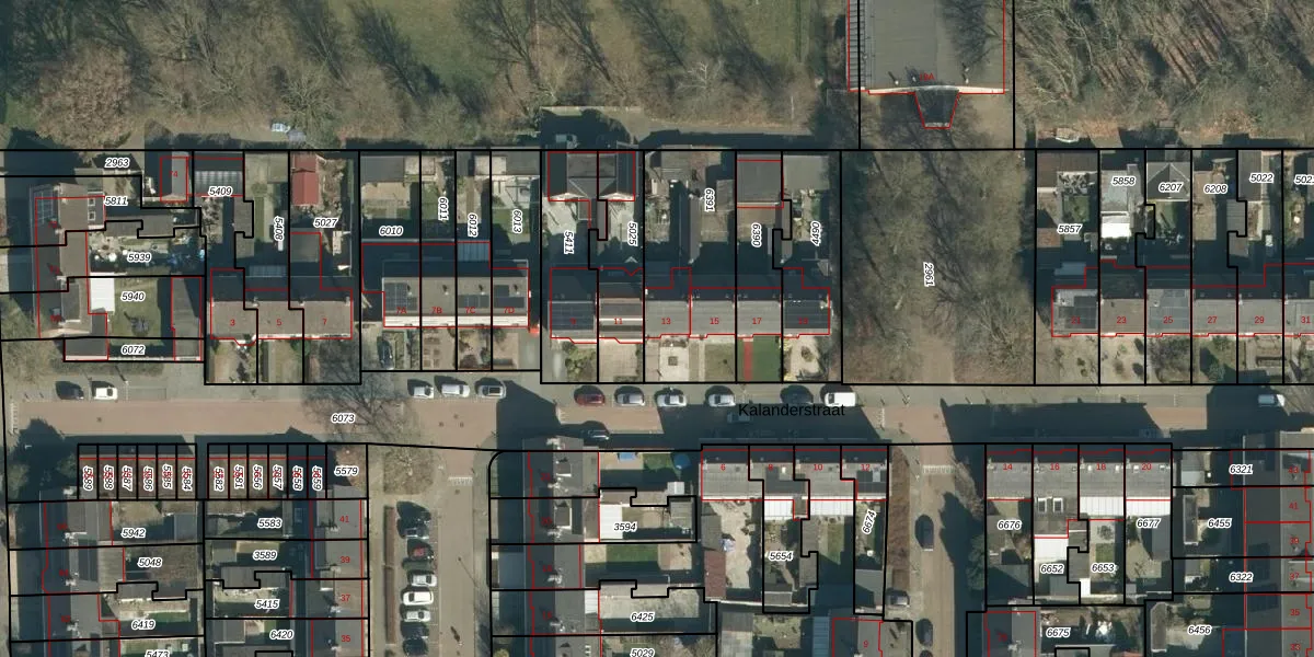 Kalanderstraat 13 is gelegen op kadastraal perceel GDP00C6391. Deze kadastrale aanduiding is uniek en wordt gebruikt door het Kadaster om eigendomsrechten en andere zakelijke rechten vast te leggen. Het perceel maakt onderdeel uit van de kadastrale gemeente Geldrop.