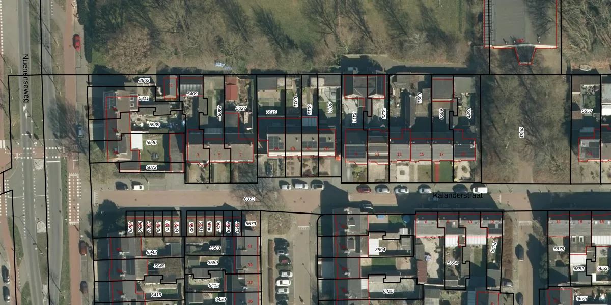 Kalanderstraat 7-C is gelegen op kadastraal perceel GDP00C6012. Deze kadastrale aanduiding is uniek en wordt gebruikt door het Kadaster om eigendomsrechten en andere zakelijke rechten vast te leggen. Het perceel maakt onderdeel uit van de kadastrale gemeente Geldrop.