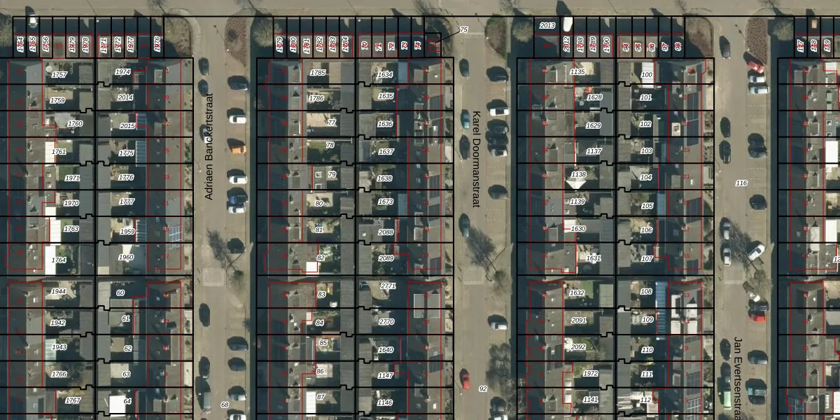 Gebruik de zoekbalk of klik op een perceel voor informatie over de adressen binnen dit perceel.