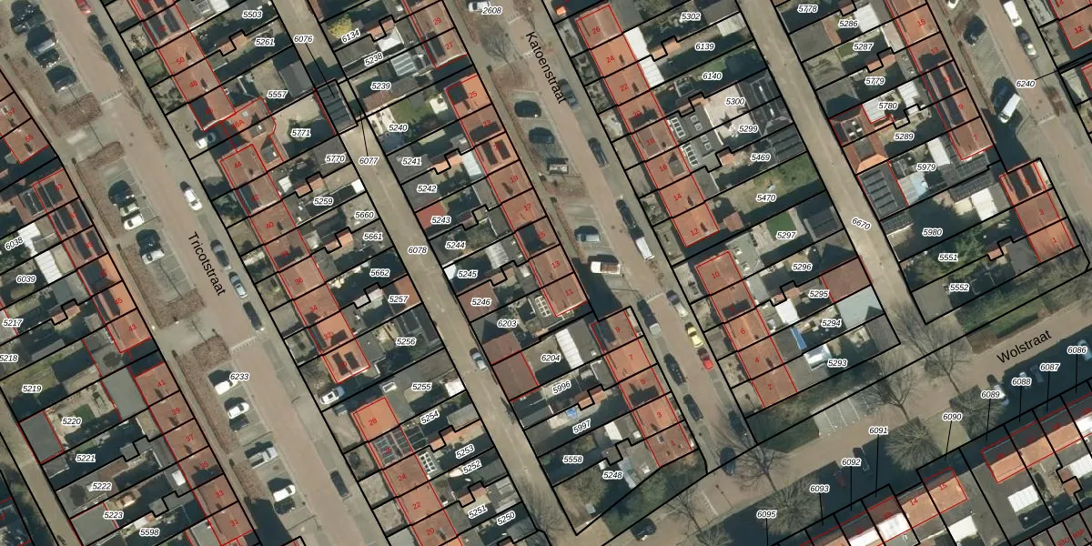 Katoenstraat 13 is gelegen op kadastraal perceel GDP00C5246. Deze kadastrale aanduiding is uniek en wordt gebruikt door het Kadaster om eigendomsrechten en andere zakelijke rechten vast te leggen. Het perceel maakt onderdeel uit van de kadastrale gemeente Geldrop.