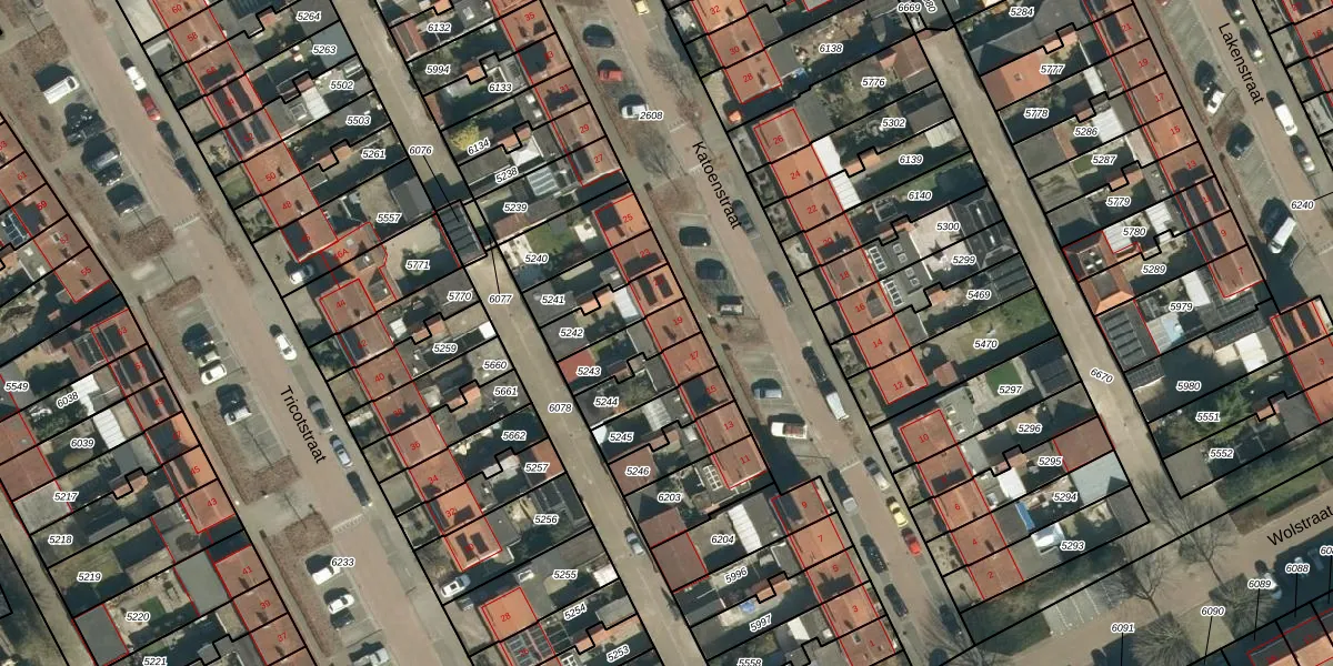 Het perceel waarop Katoenstraat 19 staat heeft een oppervlakte van 123 m². Dit is een middelgroot perceel. De perceeloppervlakte wordt geregistreerd door het Kadaster. Gedetailleerde informatie over de maten van dit perceel kunt u vinden in het rapport Kadastrale kaart met maatvoering van Katoenstraat 19.