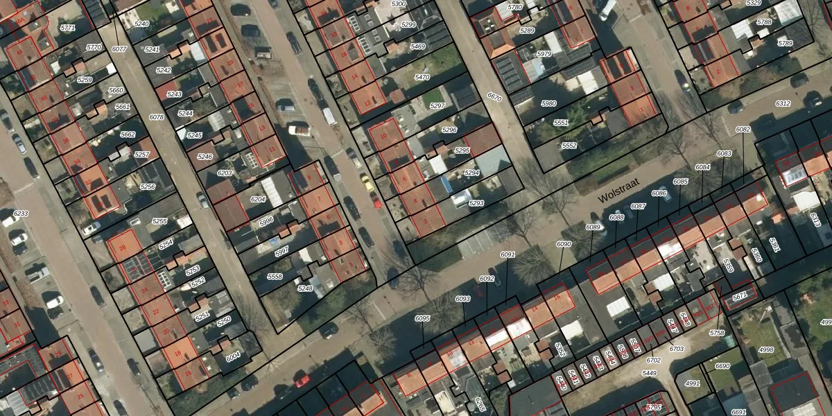 Gebruik de zoekbalk of klik op een perceel voor informatie over de adressen binnen dit perceel.
