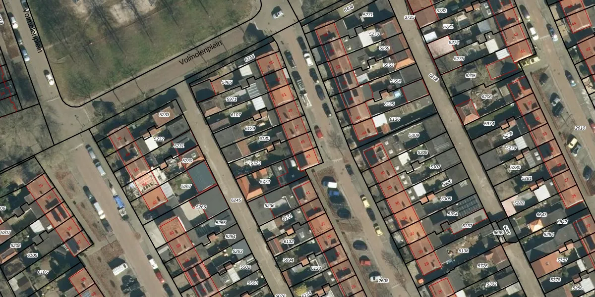Het perceel waarop Katoenstraat 45 staat heeft een oppervlakte van 174 m². Dit is een middelgroot perceel. De perceeloppervlakte wordt geregistreerd door het Kadaster. Gedetailleerde informatie over de maten van dit perceel kunt u vinden in het rapport Kadastrale kaart met maatvoering van Katoenstraat 45.