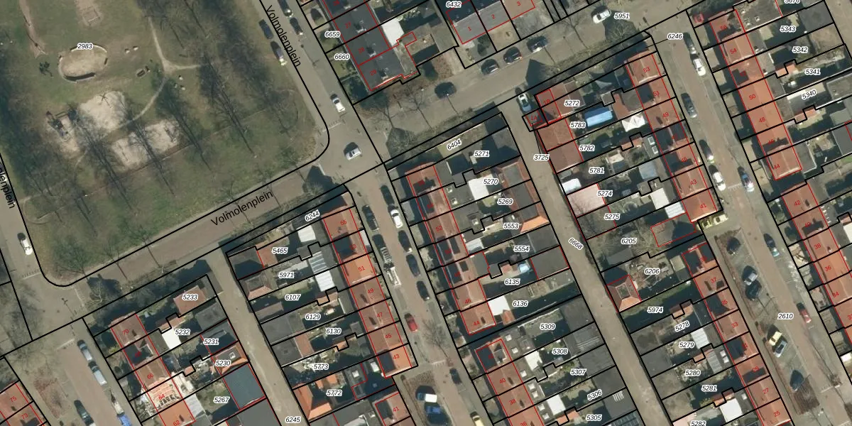 Gebruik de zoekbalk of klik op een perceel voor informatie over de adressen binnen dit perceel.