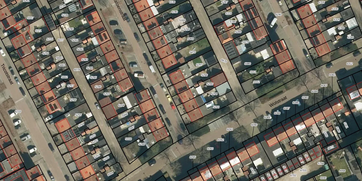 Gebruik de zoekbalk of klik op een perceel voor informatie over de adressen binnen dit perceel.
