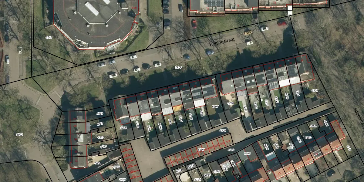 Het perceel waarop het adres ligt is GDP00-C-6295. De afkorting 'GDP00' staat voor kadastrale gemeente Geldrop. Het perceel is kleiner dan gemiddeld in Geldrop. Het perceel is 175 m² groot, terwijl het gemiddelde ligt op 1101,15 m². Het kleinste perceel in de kadastrale gemeente is 0 m² groot. De grootste perceeloppervlakte is 51,6 ha. Er zijn geen andere adressen aanwezig op het perceel. De huidige grenzen van het perceel zijn digitaal in de Basisregistratie Kadaster (BRK) geregistreerd op 20-11-2008.