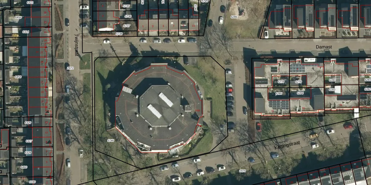 Het perceel waarop Kettingstraat 51 staat heeft een oppervlakte van 3865 m². Dit is een zeer groot perceel. De perceeloppervlakte wordt geregistreerd door het Kadaster. Gedetailleerde informatie over de maten van dit perceel kunt u vinden in het rapport Kadastrale kaart met maatvoering van Kettingstraat 51.