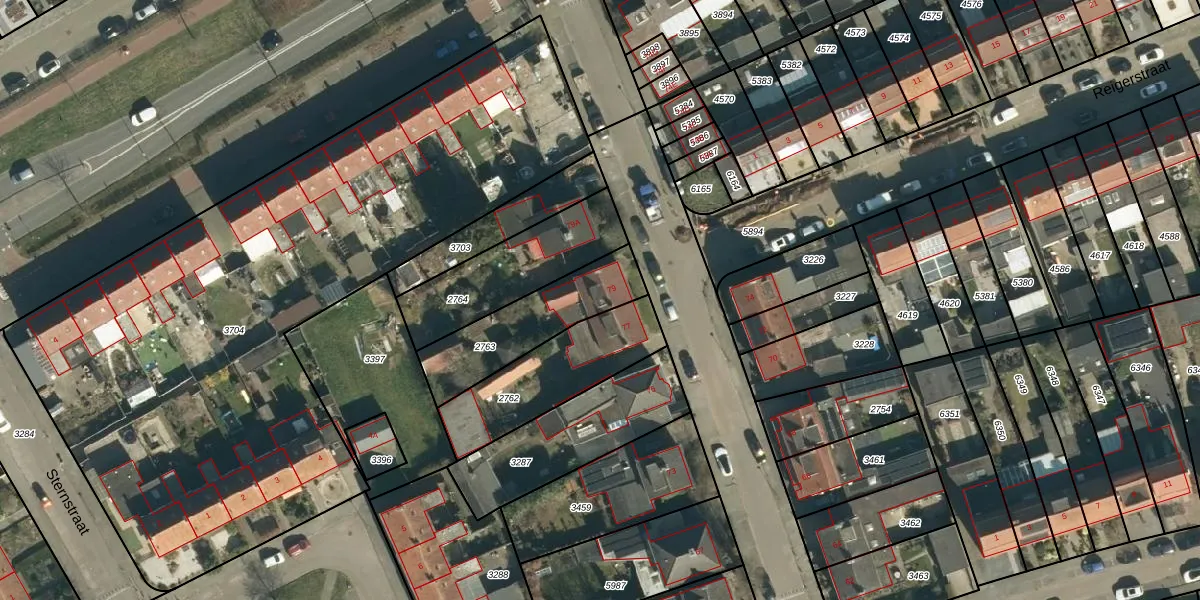 Gebruik de zoekbalk of klik op een perceel voor informatie over de adressen binnen dit perceel.