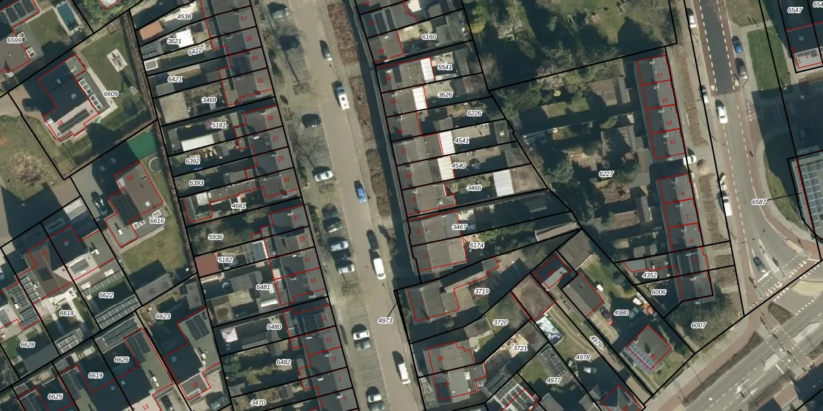 Gebruik de zoekbalk of klik op een perceel voor informatie over de adressen binnen dit perceel.