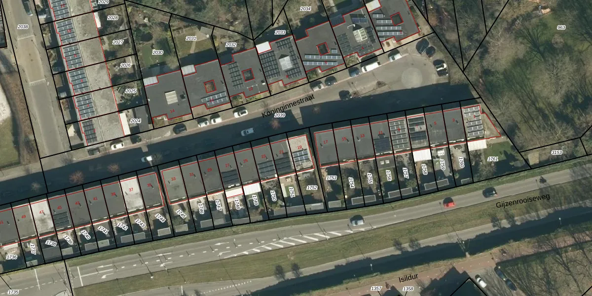 Het perceel waarop Koninginnestraat 19 staat heeft een oppervlakte van 215 m². Dit is een middelgroot perceel. De perceeloppervlakte wordt geregistreerd door het Kadaster. Gedetailleerde informatie over de maten van dit perceel kunt u vinden in het rapport Kadastrale kaart met maatvoering van Koninginnestraat 19.