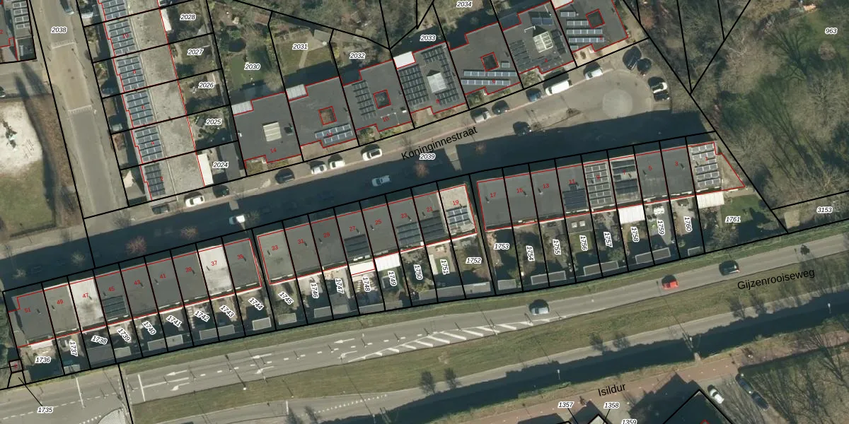 Koninginnestraat 21 is gelegen op kadastraal perceel GDP00E1751. Deze kadastrale aanduiding is uniek en wordt gebruikt door het Kadaster om eigendomsrechten en andere zakelijke rechten vast te leggen. Het perceel maakt onderdeel uit van de kadastrale gemeente Geldrop.