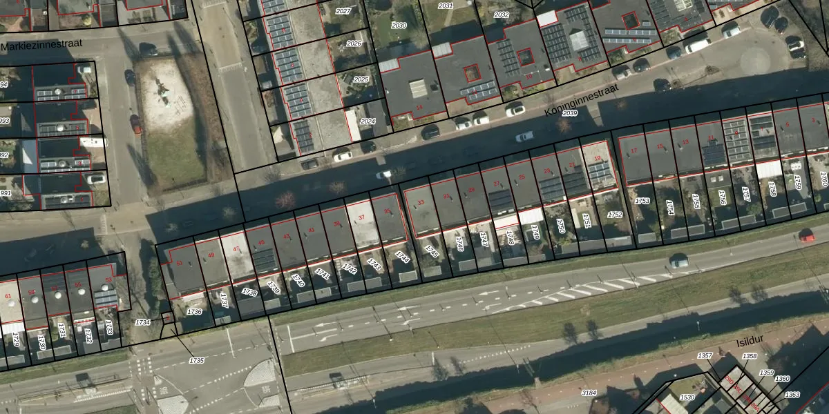 Het perceel waarop Koninginnestraat 33 staat heeft een oppervlakte van 185 m². Dit is een middelgroot perceel. De perceeloppervlakte wordt geregistreerd door het Kadaster. Gedetailleerde informatie over de maten van dit perceel kunt u vinden in het rapport Kadastrale kaart met maatvoering van Koninginnestraat 33.