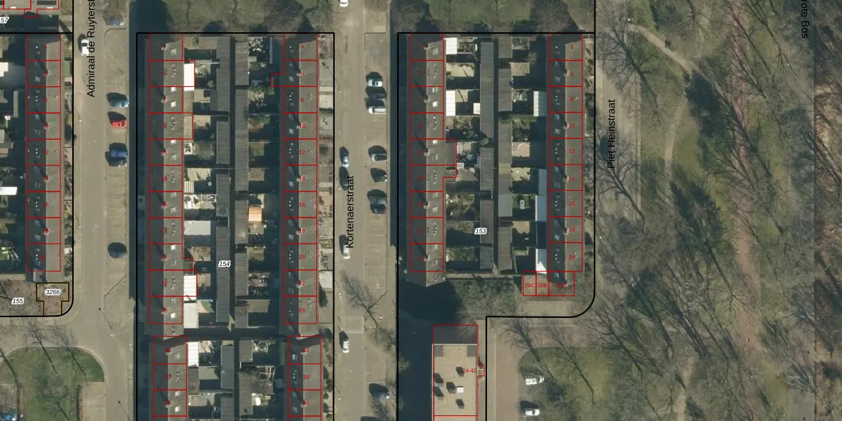 Het perceel waarop Kortenaerstraat 15 staat heeft een oppervlakte van 4670 m². Dit is een zeer groot perceel. De perceeloppervlakte wordt geregistreerd door het Kadaster. Gedetailleerde informatie over de maten van dit perceel kunt u vinden in het rapport Kadastrale kaart met maatvoering van Kortenaerstraat 15.